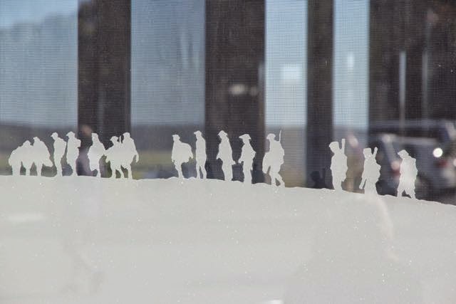 As you walk around, you swipe the pen on special markers and listen to the commentary. When you come across special posts, you place your card down on them and a big screen comes up showing all the actual documents for that person, and so you follow their progress through the war and ultimately discover their fate. This is interspersed with stunning and quite personal displayed of individuals and each ones involvement, along with a visual and audio commentary of the process and detail of the war as it played out in the various theatres. One room has full sized windows overlooking the harbour, and the walls have panoramic photos of the assembled convoys: you look at the photos and you look at the harbour. You just can't help but immediately relate the two and once again, that personal touch is there: these were real men and it really happened, right here. The picture I took was of this wire-frame horse and soldier